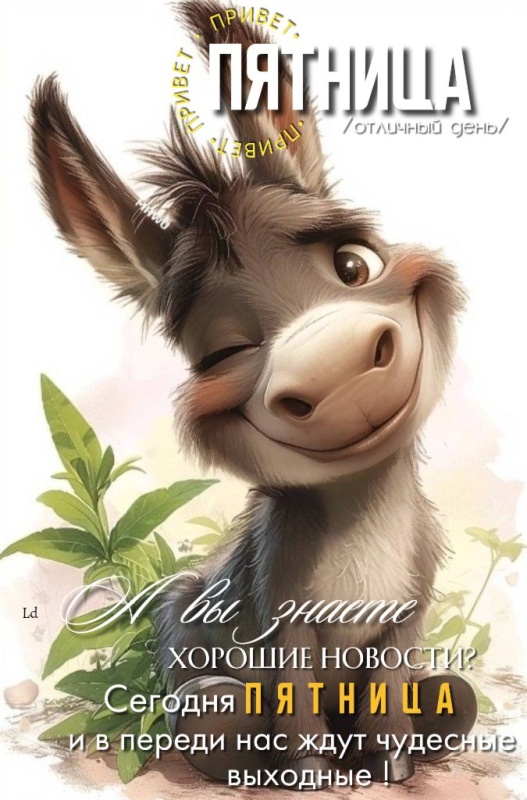 От пятницы до пятницы так долго время тянется... Ну, вот и пятница пришла! Это событие мы все ждем целую неделю и очень устали. )) Многие ждут окончание последнего рабочего дня недели, чтобы отметить это событие в другу семьи или друзей. Ну, а по поводу этого расчудестного дня недели мы собрали для вас не менее расчудесные картинки с пятницей и доброе утро пятницы. Порадуйте себя и своих друзей этими прикольными картинками. Скачивайте и отправляйте любым удобным способом.