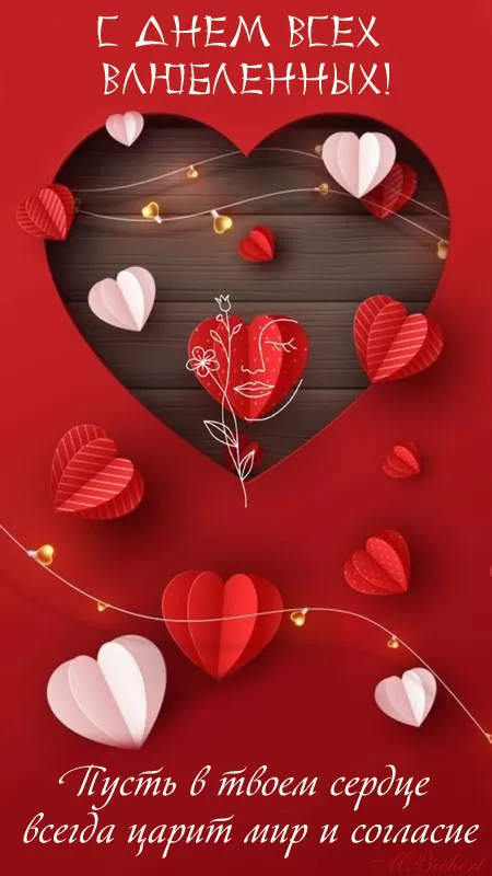 14 февраля мы отмечаем День святого Валентина или День всех влюбленных! Пусть этот день будет наполнен красивыми поздравлениями, такими же красивыми, как наши картинки и открытки с Днем святого Валентина! Пусть любовь переполняет Ваши сердца, и каждый миг напоминает вам о том, как важно ценить и беречь это красивое чувство. С праздником всех наших читателей и пусть любовь, добро и красота правит миром и нашими душами.